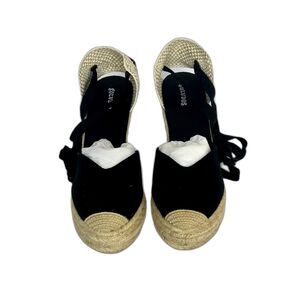 Soludos Wedge Shoes Women’s Size 8 Color Black Tan Tie Up Ankles Sandals