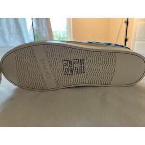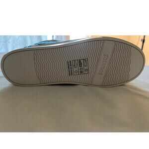 Leather and boucle knit upper with rubber sole. Made in China. Lace-up front. Gold-tone foiled Soludos logo at tongue. Textile lining and footbed. Stacked midsole. Manufacturer Style No. 1000862.