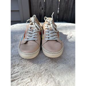 Soludos Women's Pink Rainbow Wave Sneakers Size 10 Embroidered Lace-Up