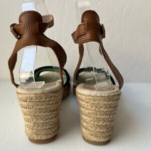 Soludos Woven Beaded Wedge Espadrille Sandals Open Toe Resortwear Navy Size 9