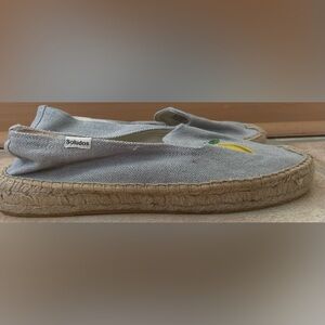 Soludos Woven Platform Light Blue/Yellow Slip-On Espadrilles Lemon; size 10
