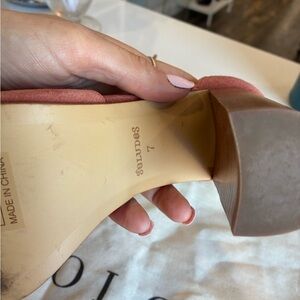 Soludos blush pink suede ankle strap closed toe heels size 7