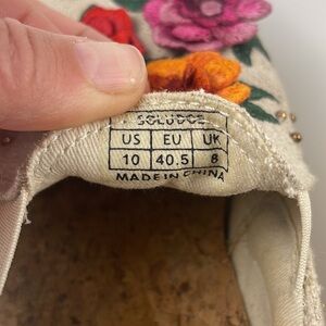Soludos x Anthropologie | embroidered boho floral slip on neutral boat shoe 10