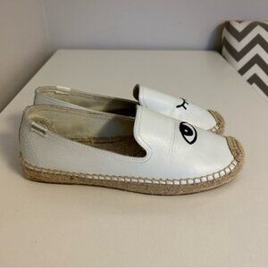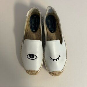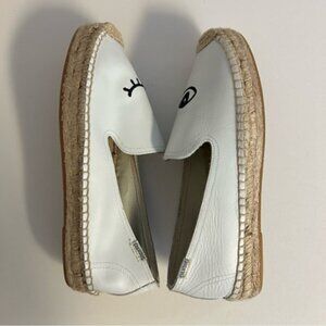 Soludos x Jason Polan Wink Embroidered Smoking Leather Slipper Espadrilles Shoes. In excellent condition new without box. Very rare pair of Soludos x Jason Polan White Platform Espadrilles with embroidered eyes. Most of the available pairs are made out of canvas and not leather.