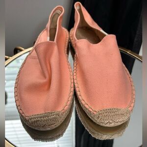 Size 10. Like New. Traditional canvas espadrilles inspired by eccentric artist Salvador Dali's endless meanderings through the streets of Barcelona, made by NYC's Soludos. Braided jute soles rest on beds of rubber for a shoe authentically Mediterranean, yet tough enough for taking on the big city.