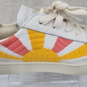 Soludos White Leather Sneakers with Rainbow and Sun Embroidered Design