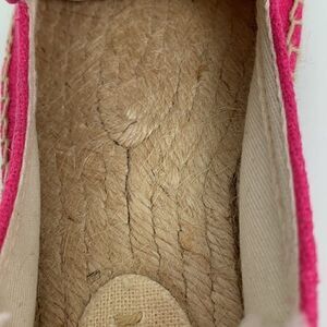 Soludos pink canvas embroidered elephant platform espadrilles. Adorable front of elephant one one shoe and back side of elephant on the other. One inch platform.