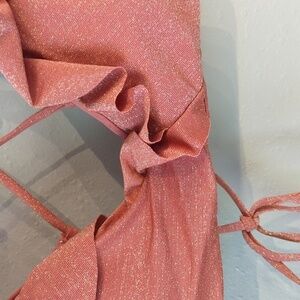 Soluna Lurex Shimmer Gold Swim Bikini Set Top and Bottoms Size Large Sweetheart