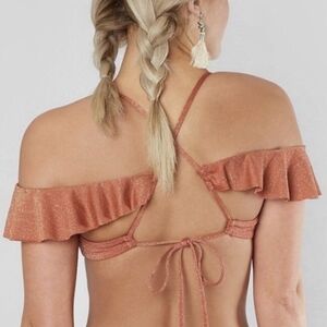 Soluna Lurex Shimmer Gold Swim Bikini Set Top and Bottoms Size Large