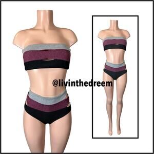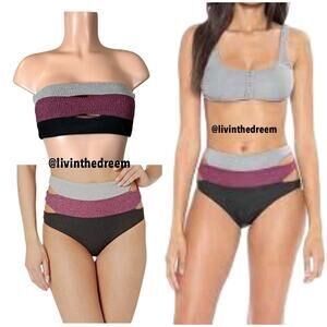 Soluna Swim Moonlight Triple Strap High Waist Bottoms M & Bandeau Top L Bikini $115