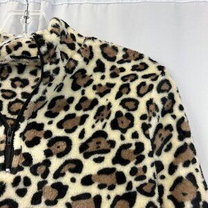Solution Womens 1/4 Zip Pullover Fleece Top Long Sleeve Multicolor Cheetah Small