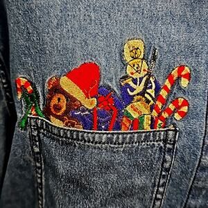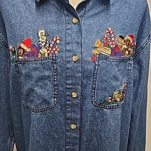 Solutions Original Denim Christmas Shirt Button Closure 2 Pocket