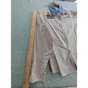 Solutions Original Shirt Women's Medium – Red Button Down Farm Embroidered Vintage Top