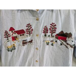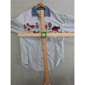 Solutions Original Shirt Women's Small Blue Button Down Top Farm Embroidered VTG