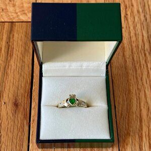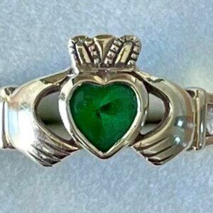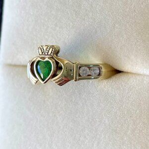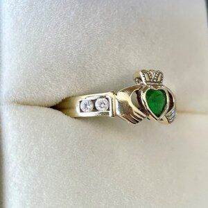 Solvar Emerald & Cubic Zirconia 14K Yellow Gold Claddagh Ring Size 5