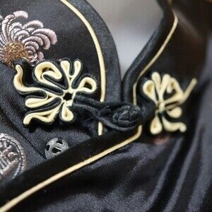 Solz Squirrel Black Oriental Asian Floral Embroidered Geisha Top Vintage 42