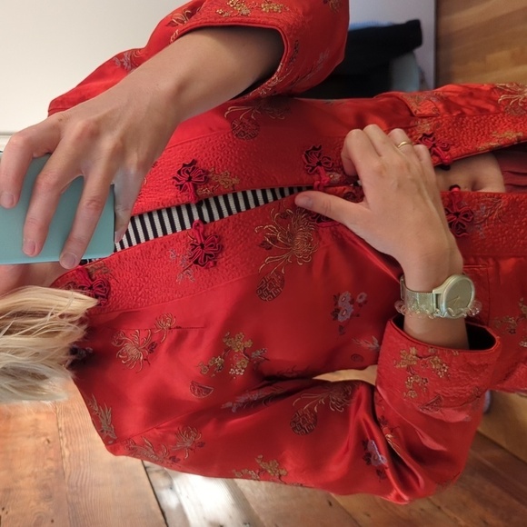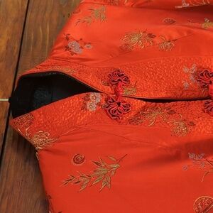 Excellent condition. Reversible. Both sides have pockets. Frog closures on both sides. Chinese style. Mandarin collar. 100% silk. Hand embroidered so intricately. The shoulders are lightly padded.