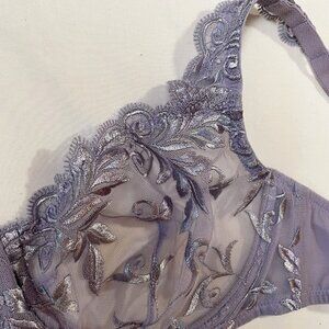 👙 Lavender Bra – Sheer mesh with intricate shimmery floral embroidery. Underwire support, unlined cups, and adjustable straps for a flattering, romantic silhouette. Feminine and breathable design.