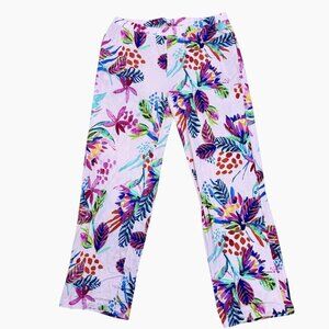 Tropical Floral Pink and multicolor pull on pant