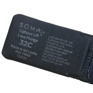 Soma 32C Bra Lightest Lift Lace Plunge Pure Black Underwire Sheer
