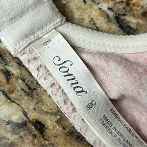 Soma 36C Embraceable Demi Lace Trim Bra Pink Underwire