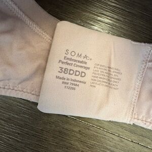 Soma 38DDD EMBRACEABLE perfect coverage Elegant Lace Trimmed Bra in Soft Pink