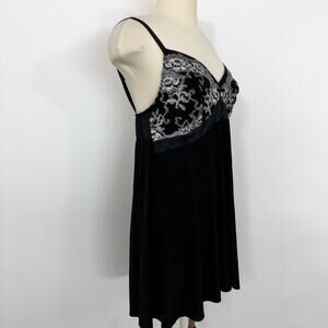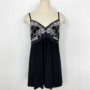 Soma Babydoll Teddy Slip Dress Chemise Black with Ivory Lace L NWT