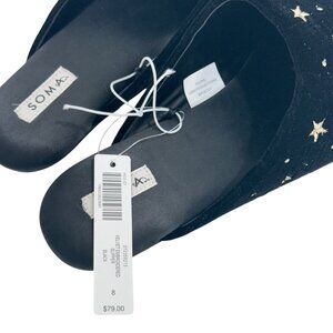 Soma Black Star Embroidered Velvet Slipper Mules Womens Size 8 New