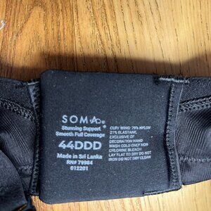 Soma Black Stunning Support Smooth Full Coverage Underwire Bra Sz 44DDD