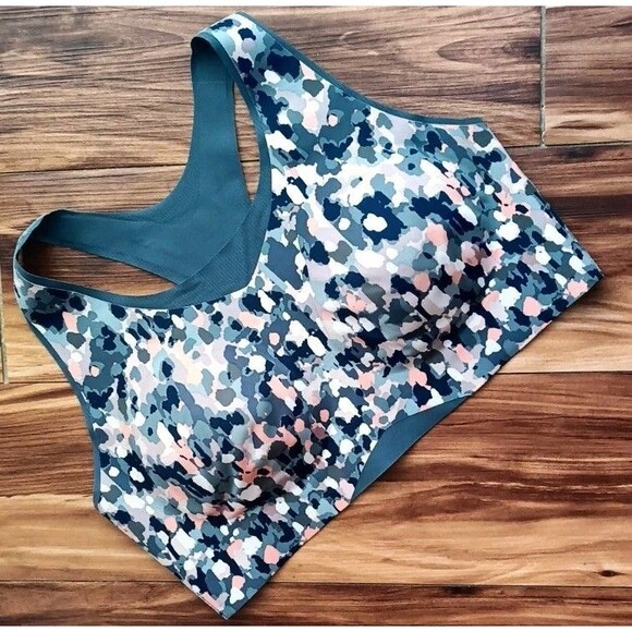 Soma Bliss Breathe Racerback Sport Bra Size XL Blue Natural Abstracts Orion