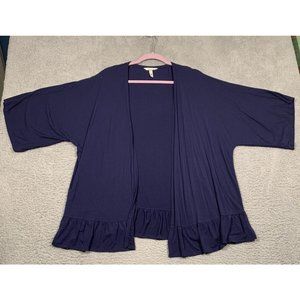 Soma Blue Cardigan Ruffle Hem Short Sleeve Rayon Blend Soft Small S