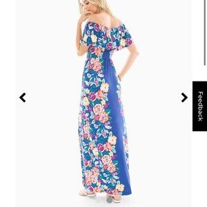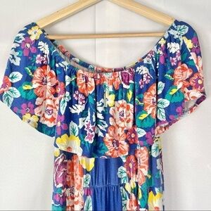 Soma Blue Layered Floral Flounce Off Shoulder Maxi Dress M