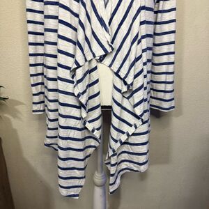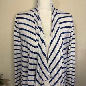 Soma Blue and White Striped Cardigan Sweater Open Front
