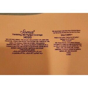 Soma Bra 38DDD Orange Underwire Vanishing 360 Perfect Coverage Lined