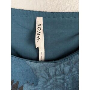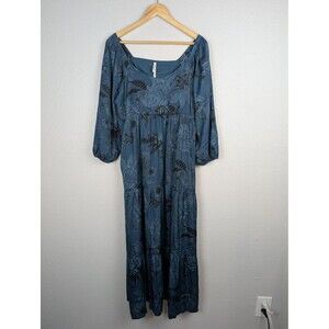 Soma Dress Womens Large Blue Black Floral Maxi Boho Puff Sleeve