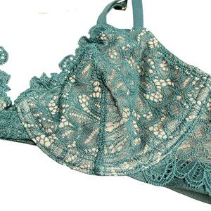 Soma Bra Unlined Lace Plunge NEW Dark Forest Green 34B