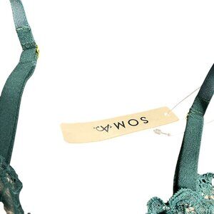 Soma Bra Unlined Lace Plunge NEW Dark Forest Green 34B Convertible