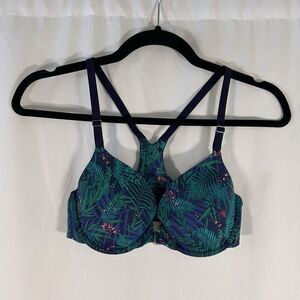 Soma Bra Women's 34B Green Floral Underwire Padded Center Clasp Stretchy