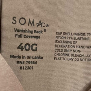 Soma Bra Women's Size 40G Full Coverage Underwire Mochaccino Vanishing Back NWT