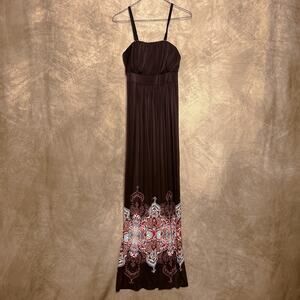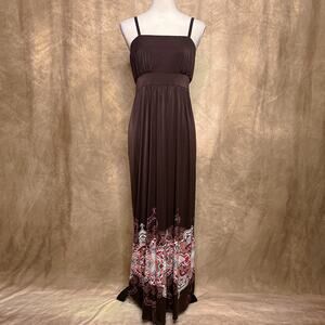Soma Brown Paisley Hem Empire Waist Maxi Dress Sleeveless Shift Spaghetti Strap