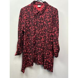 Soma Button Down Swing Tunic Top Womens XL Red Slub Knit Cotton Animal Print