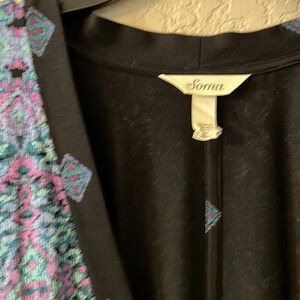 Soma Cool Nights Kimono Pajama Wrap Fine Lace Grand Border Black S