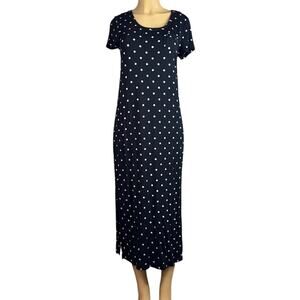Soma Cool Nights Long Sleepshirt Nightgown Black Pink Polka Dot Size Small