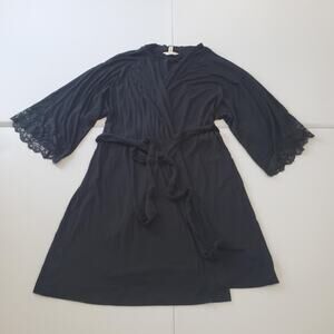 Soma Cool Nights Robe Womens Small Medium Black Lace Trim Sleepwear