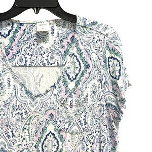 Soma Cool Nights Soft Nightgown White Paisley Print Short Sleeve V-Neck Size Med