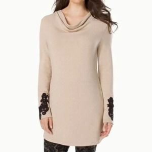 Soma Cowl Neck Sweater Womens Size Small Luxuriously Soft Lace Detail Beige