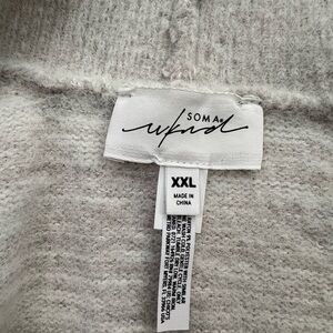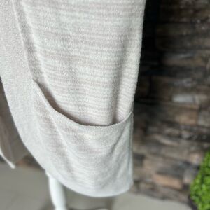 Elegant Soma cardigan in a soft cream shade. Perfect for layering. Features an open-front design.
