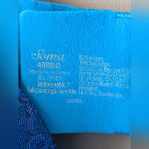 Soma Embraceable Blue Full Coverage Lace Trim Bra UW 40DDD