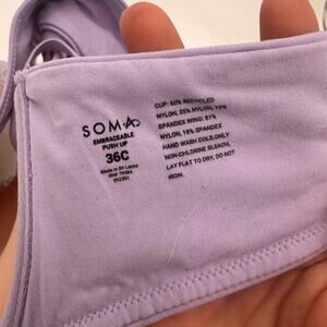 Soma Embraceable Push Up Lavender Lace Front Closure Bra Size 36C