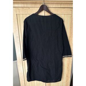 Soma Embroidered Lightweight Tunic Swim Cover Up 3/4 Sleeve Black Tan, Medium?